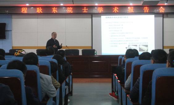 程耿东院士了回顾了结构优化及连续体结构拓扑优化的发展历程,指出连续体结构拓扑优化难点,总结了不同拓扑间连续变换时的连续性问题及其求解算法和理论,列举了拓扑优化技术在长征五号、动车组列车等实际工程中的成功案例,并对结构拓扑优化的发展方向提出展望。程院士结合自己参与长征五号重大科研项目的科研经历,与大家分享做科研的经验和体会,鼓励大家潜心做学问,勇于创新,踏实搞科研。数学与统计学院院长尚有林教授与程院士就数学优化理论与工程应用的紧密结合展开了讨论。