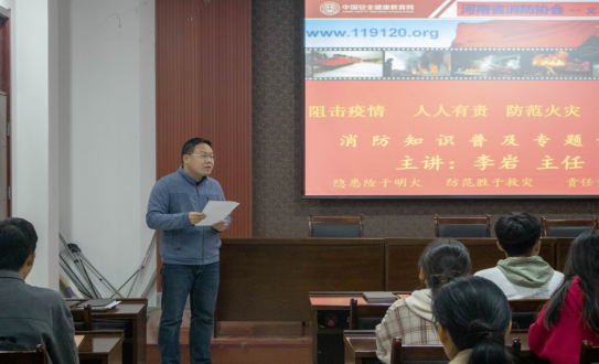 首先,李主任通过一个个触目惊心的案例,向大家再次重申了消防安全的重要性,同时为老师与同学们普及了消防安全知识,并强调要时刻牢记“患险于明火,防范胜于救灾,责任重于泰山”。随后,李主任向大家展示了常见消防用具的具体使用方法,遇难逃生的重要注意事项。最后,李主任运用实例讲解火灾发生时如何运用消防知识阻止火势发展以及如何逃生,给在场师生留下深刻印象。