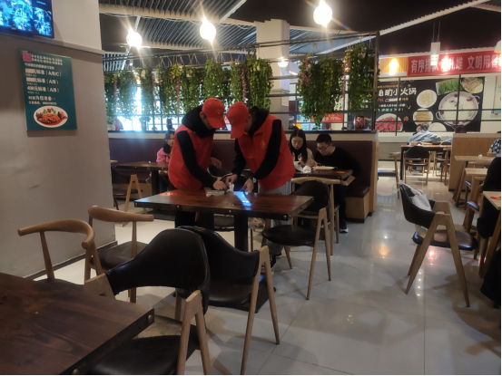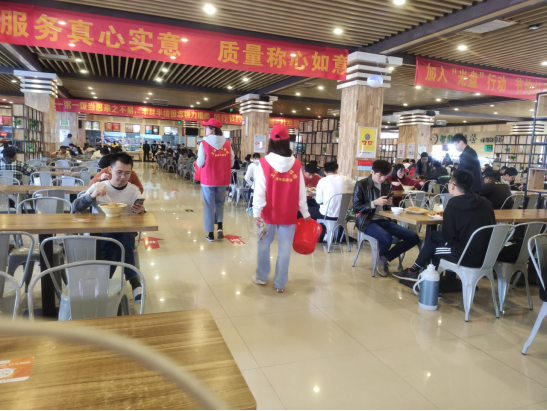 活动中,土木工程学院2019级与2020级学生干部及青年志愿者协会成员精心设计了多幅展板摆放至乾园食堂门口,通过展板倡导同学们爱粮节粮,志愿者们还走进食堂提醒用餐同学做到“光盘”,并协助食堂工作人员收发餐具,整理桌面,打扫卫生。