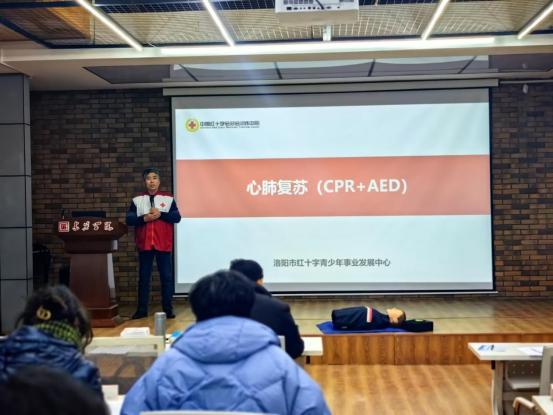 为进一步普及应急救护常识,大力弘扬“人道、博爱、奉献”的红十字精神。2023年12月27日,由洛阳市红十字会和beat365唯一官网红十字会主办的2023年教职工应急救护技能培训在beat365唯一官网三楼学术报告厅成功举办。校红十字会秘书长、beat365唯一官网党委书记段国强主持会议,特邀洛阳市红十字会青少年事业发展中心主任赵海峡担任主讲,来自全校各学院/书院的44名教师接受培训。