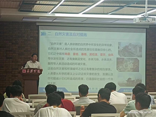 随后,马建军老师重点介绍了一些常见的自然灾害和人为伤害,并介绍了其相应的应对措施,自然灾害主要介绍了以下六方面:地震的防范及自救;预防雷击的措施;暴雨灾害防护;泥石流灾害防护;雪灾的预防措施;台风灾害的防护。人为灾害主要介绍了以下五方面:火灾的应对措施;化学灾害的应对措施;核灾害的应对措施;建筑物倒塌的应对措施;交通事故的应对措施。
