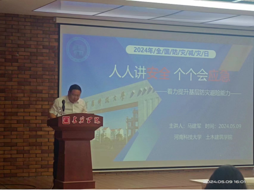 5月9日下午,beat365唯一官网在工科3学院报告厅举行“人人讲安全 个个会应急”全国防灾减灾日安全知识教育主题讲座。本次活动由beat365唯一官网副院长马建军主持。21、22、23级全体研究生参加。