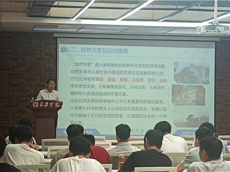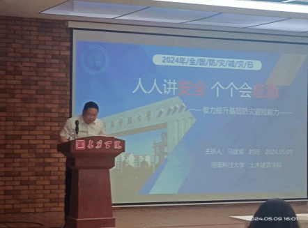 学院认真落实学校2024年防灾减灾日工作的要求,将防灾减灾教育纳入院党委中心组理论学习和教职工理论学习内容,围绕防灾减灾活动主题开展深入学习并组织研讨,研判化解风险隐患。利用教职工理论学习、学生主题班会,组织开展防灾减灾消防知识讲座,做到人人懂安全,事事保安全,推动防灾减灾宣传教育走深走实。 副院长马建军老师十分重视防灾减灾工作,于2024年5月9日下午4时,为学生开展相关讲座